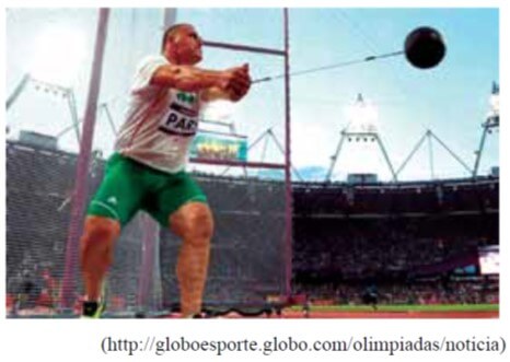 06. (UNIFESP) O atleta húngaro Krisztian Pars conquistou medalha de ouro na olimpíada de Londres no lançamento de martelo. Após girar sobre si próprio, o atleta lança a bola a 0,50 m acima do solo, com velocidade linear inicial que forma um ângulo de 45º com a horizontal. A bola toca o solo após percorrer a distância horizontal de 80 m.