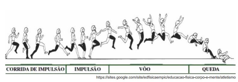 b) A velocidade horizontal média, VH, em m/s, da atleta durante o salto.