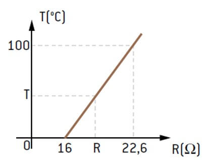 A correspondência entre a temperatura T, em ºC, e a resistência elétrica R, em Ω, é dada pela equação:
