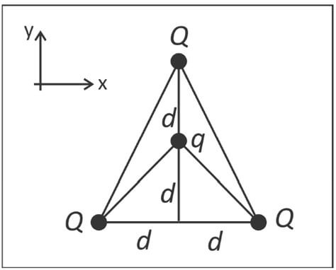 Sendo Q = 2 x 10‐4 C, q = –2 x 10‐5 C e d = 6 m, a força elétrica resultante sobre a carga q